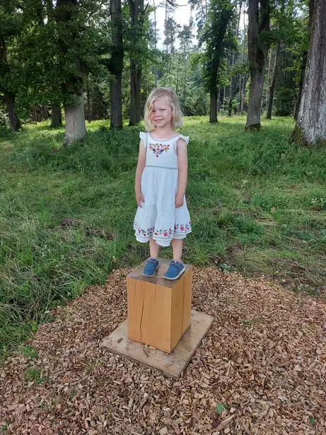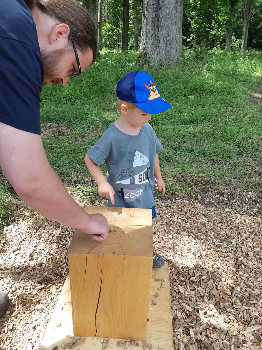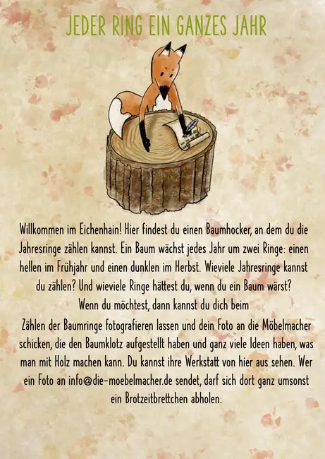 Liebe Möbelmacher, ich bin heute den Fuchsau-Rundweg mit Oma und Opa gegangen. Es war wirklich spannend die „Stimmen des Wassers“ zu hören, vom Biber angenagte Baumstämme zu berühren, in den Weihern große Libellen fliegen zu sehen, Bäume zu umarmen usw.. Natürlich habe ich auch bei Station 10 die Baumringe gezählt aber mehr wie bis zwölf kann ich noch nicht zählen. Opa (er meinte ihr kennt ihn?!) hat dann von mir ein Foto für Euch gemacht und sagte, ich kann mir dann irgend wann mal ein Brotzeitbrettchen (was ist das genau?) bei Euch abholen. Vielen Dank und bis bald!