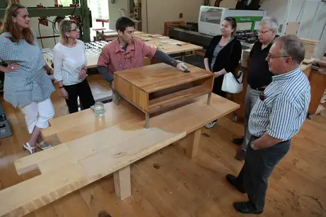 Wir zeigen das Nachölen von Oberflächen, das Einstellen von Scharnieren und wie man "Fehler ausbügelt" und dabei Dellen entfernt. In der Ausstellung gibt es Ver- und Vorführungen zum Wohnen, Sitzen, Schlafen und Kochen.