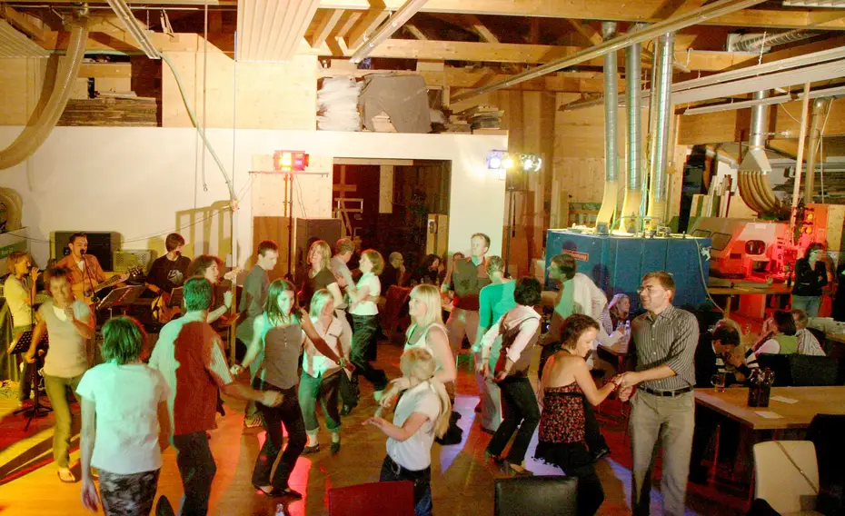Unser edler Holzboden in der Werkstatt ist nicht nur zum Arbeiten angenehm, sondern auch zum Tanzen und Feiern