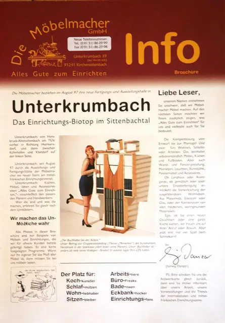 | Juni 1988 | Betriebsgründung der Möbelmacher durch Gunther Münzenberg und herwig Danzer |