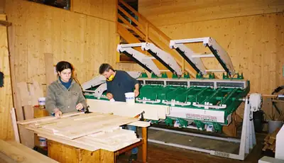 Seit 2006 übernimmt die computergesteuerte CNC-Maschine viele Arbeiten, die früher an den Einzelmaschinen zu tun waren. Aber das Schreinern übernimmt nicht der Computer, so wenig, wie Ihr Word-Programm Texte für Sie schreibt.