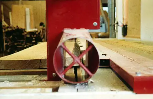 Die Längsschnittsäge durch das Absaugrohr fotografiert.