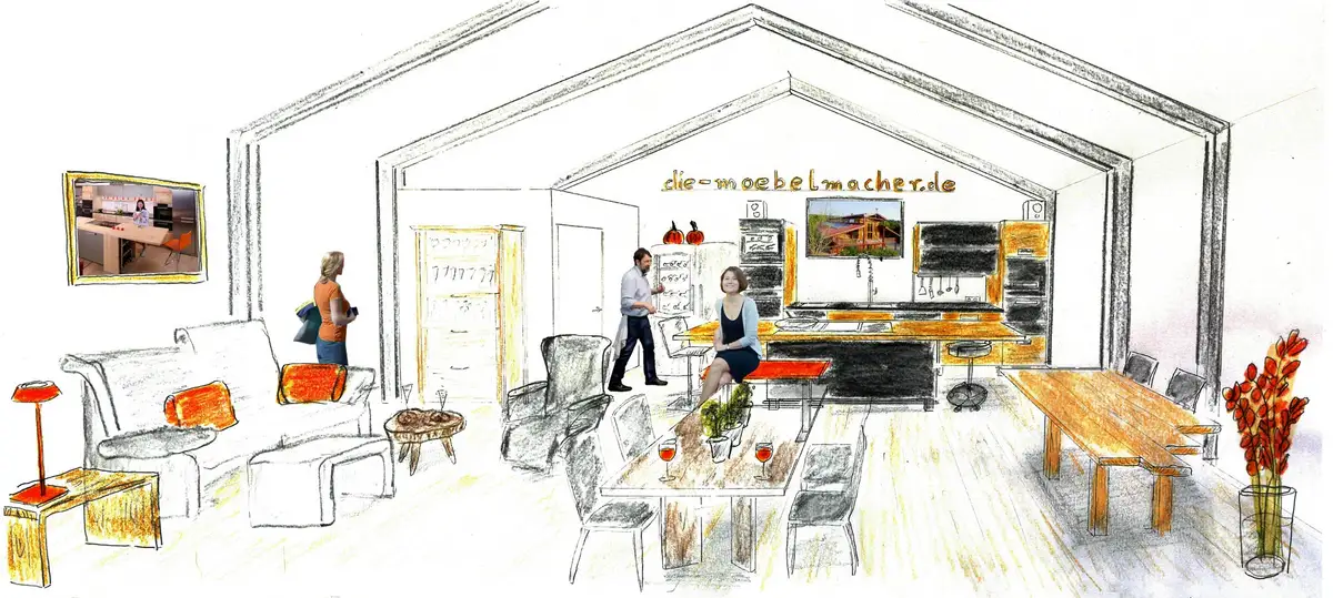 Wir wollen zeigen, warum die Massivholzküchen der Möbelmacher professionelle Werkzeuge zum Kochen sind, warum wir Massivholz aus der Hersbrucker Alb verwenden, warum wir aber auch im Nassbereich auf Keramik, Edelstahl oder Granit ausweichen. Und natürlich, warum wir die Geräte von Miele, Jaksch, Irinox, Liebherr, Komet und Ankarsrum lieben.