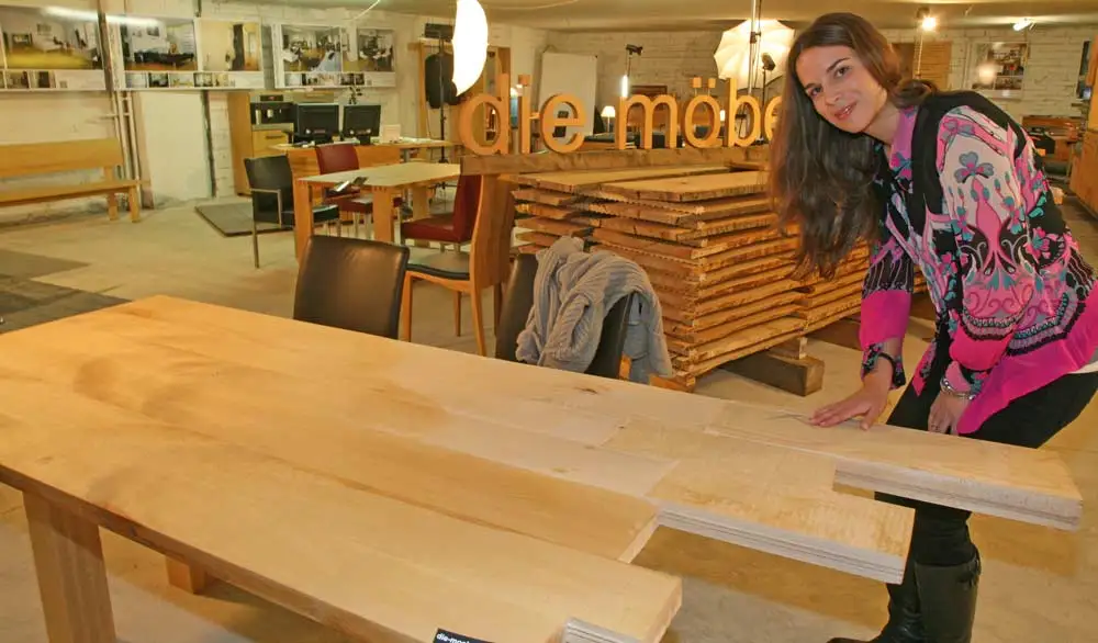 Dieser Buchen-Masivholztisch zeigt die handwerkliche Verarbeitung vom Baum zu Tisch