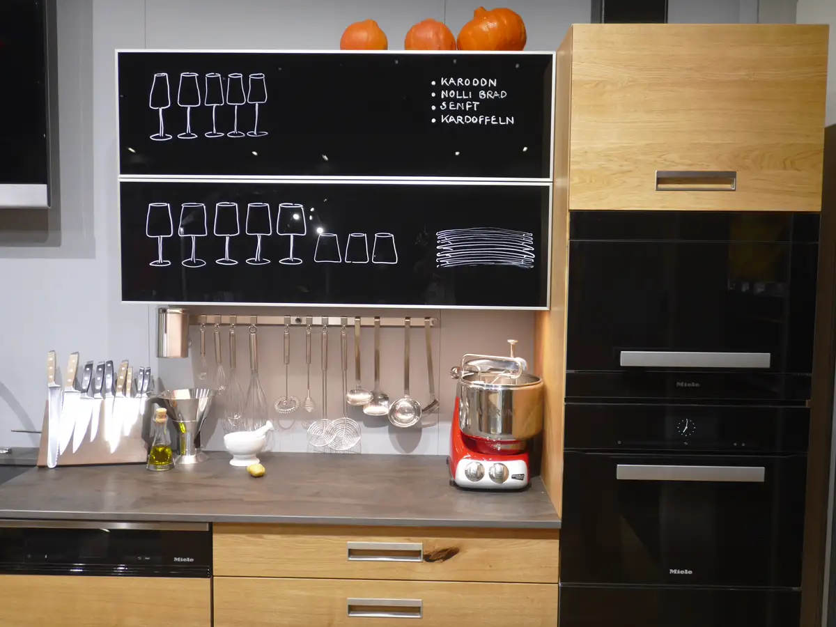 Der Fokus imExternen Link in neuem Fenster öffnen planHAUS liegt in diesem Jahr auf Multifunktion und Flexibilität, was wir zum Beispiel in der Küchenfront des Oberschranks verwirklicht haben, deren Glasfüllung jederzeit austauschbar ist. Weil es bei Massivholzseiten keinen Unterschied zwischen verdeckten und sichtbaren Seiten gibt, können unsere Küchen auch super umgezogen werden.
