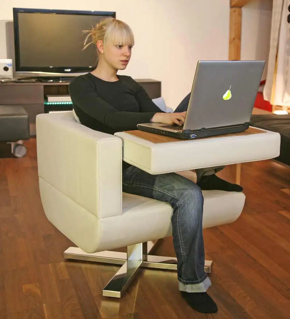 Wir nehmen auch noch den Chillap-Sessel von Jori mit, weil dessen Drehbarkeit und die Verstellbarkeit der Armlehne für alle Hotelgäste sehr angenehm ist.