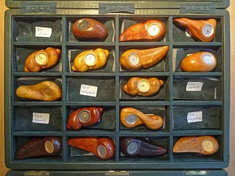 Wir sind die Hersteller, aber nicht die Erfinder der Handuhr. Diese Ehre gebührt Anselm Stieber, der durch die Netzke-Sammlung seines Vaters inspiriert wurde (Netzke heißen die kleinen Kunstwerke, die die Japaner am Kimono quasi zum Halten der Handtasche am Gürtel verwenden.) Die Handuhr verbindet das haptische Erlebnis des "Begreifens" mit der Funktion des "Auf die Uhr sehens," alledings nicht mit dem Akt der Gleichgültigkeit, den die Armbanduhr vermittelt, sondern mit dem bewussten In-die-Tasche-greifen-und-draufschauen und mit dem "danach auch noch zu wissen, wie spät es ist." Wir stellen diese wertvollen Unikate her, aber viel mehr über die Zusammenhänge erfahren Sie auf der homepage von Anselm Stieber handuhr.de.