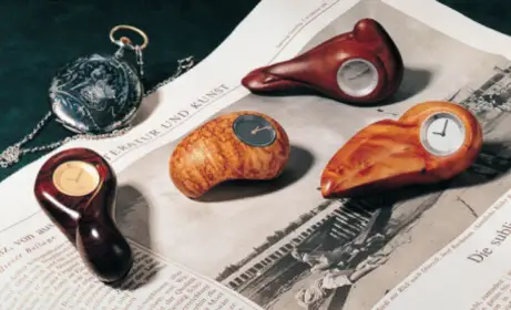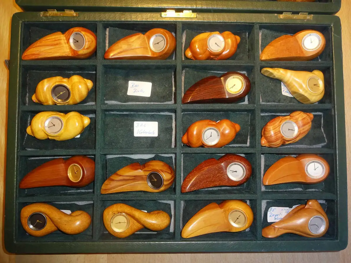 Nach Künstlerentwürfen und aus fein bearbeitetem Holz gemacht besitzt die Handuhr aber einen ganz eigenen ästhetischen und haptischen Charme, der den Besitzer an „die Zeit zu leben“ erinnert.