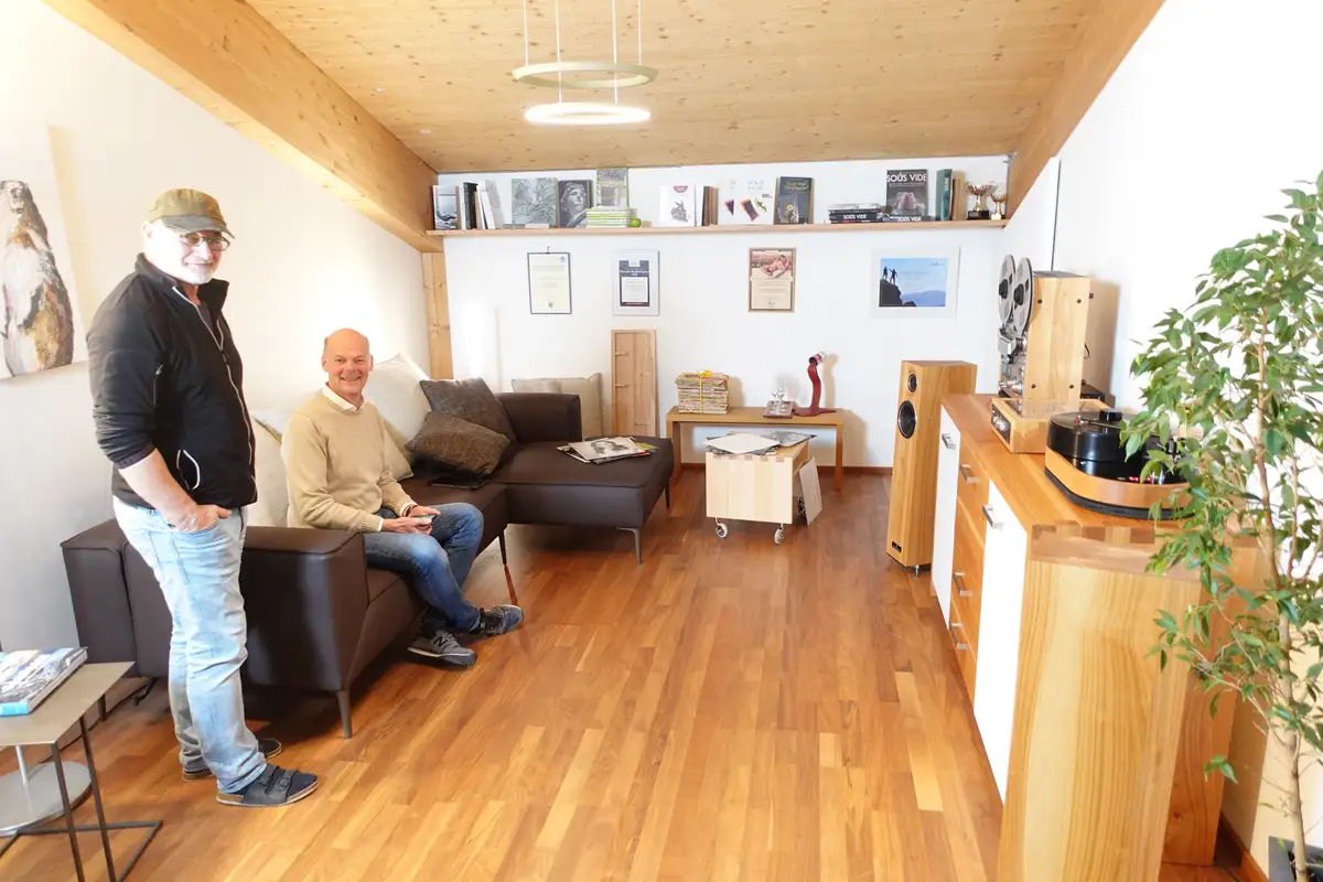 Das erste Treffen von Julian Lorenzi (Analog Manufaktur Germany) und Andreas Steiner (Wiener Lautsprecher Manufaktur) bei den Möbelmachern