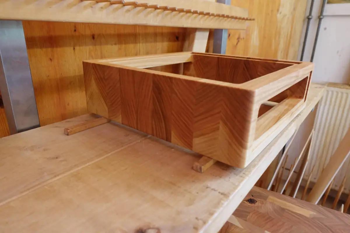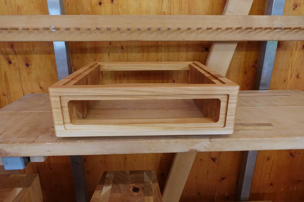 Das Hirnholz des Gehäuses ist seitlich zu sehen, was ein wenig schade ist, deshalb präferieren wir das Hirnholz auf der Vorderseite, was wir Quermaserung nennen