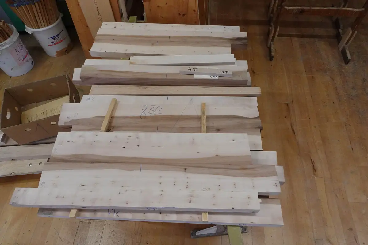 - Es wird bei uns am Gelände entrindet, gesägt, gestapelt und ein paar Jahre im Außenlager getrocknet, bevor es in die Trockenkammer kommt