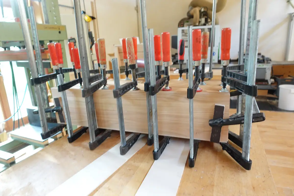 Die handwerkliche Verleimung der beiden Hälften zum Massivholzlautsprecher