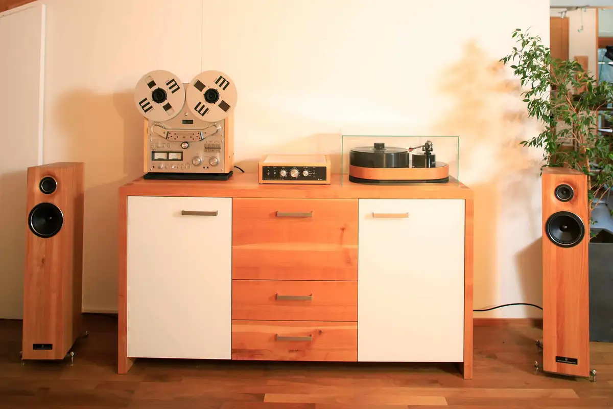 Alle Links, die die Möbelmacher mit Plattenspielern, Lautsprechern, Verstärkern und Hifi-Möbeln aus Massivholz verbinden