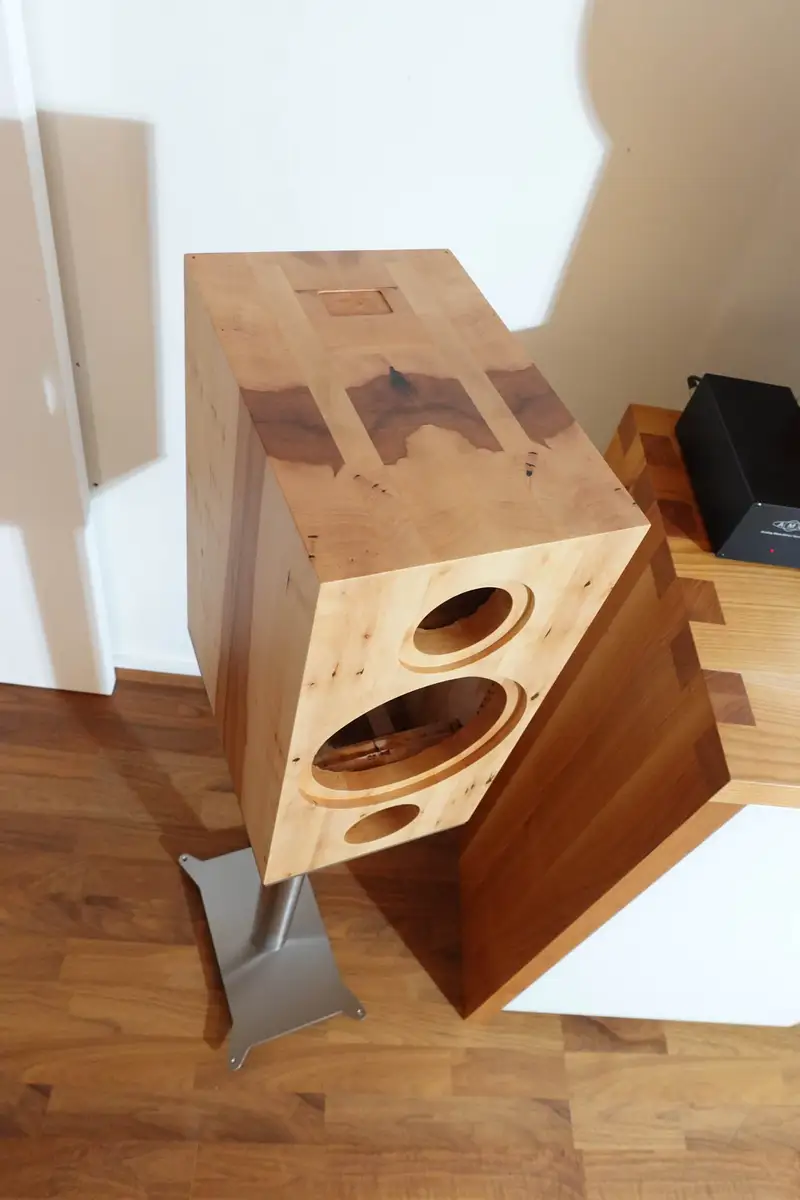Wir wurden schon mehrfach danach gefragt, deswegen haben wir für die anstehende Messe Highend im Mai 23 in München und einen Kunden die ersten Regalboxen mit der schon bewährten Technik der "Ella Monitor" in Massivholz aufgelegt. Diesmal in massiver Elsbeere und einer Spiegel-Verleimtechnik, die die ersten Betrachter schon sehr gelobt haben.