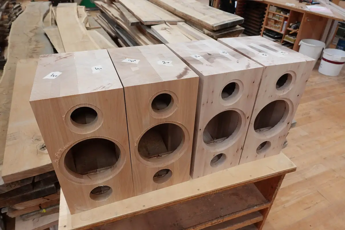 Trotz CNC-Technik steckt ganz viel handwerkliches Können und Messen in den Massivholzlautsprechern