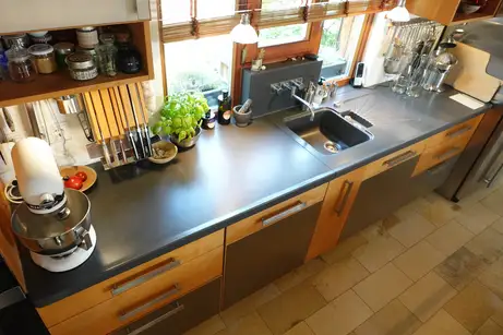 Seit über 30 Jahren ist Horst Hager (a3) für unsere Oberflächen zuständig und wer unsere gerade nachgeölte Küche und den Esstisch im regionalen Musterhaus kritisch beäugt, wird feststellen, dass er nix sieht. Keine Kratzer oder Gebrauchsspuren, überzeugen Sie sich bitte selbst. Gerne können wir anhand unserer Pläne abschätzen, wie viel ein Nachölen bei Ihnen ungefähr kosten würde.