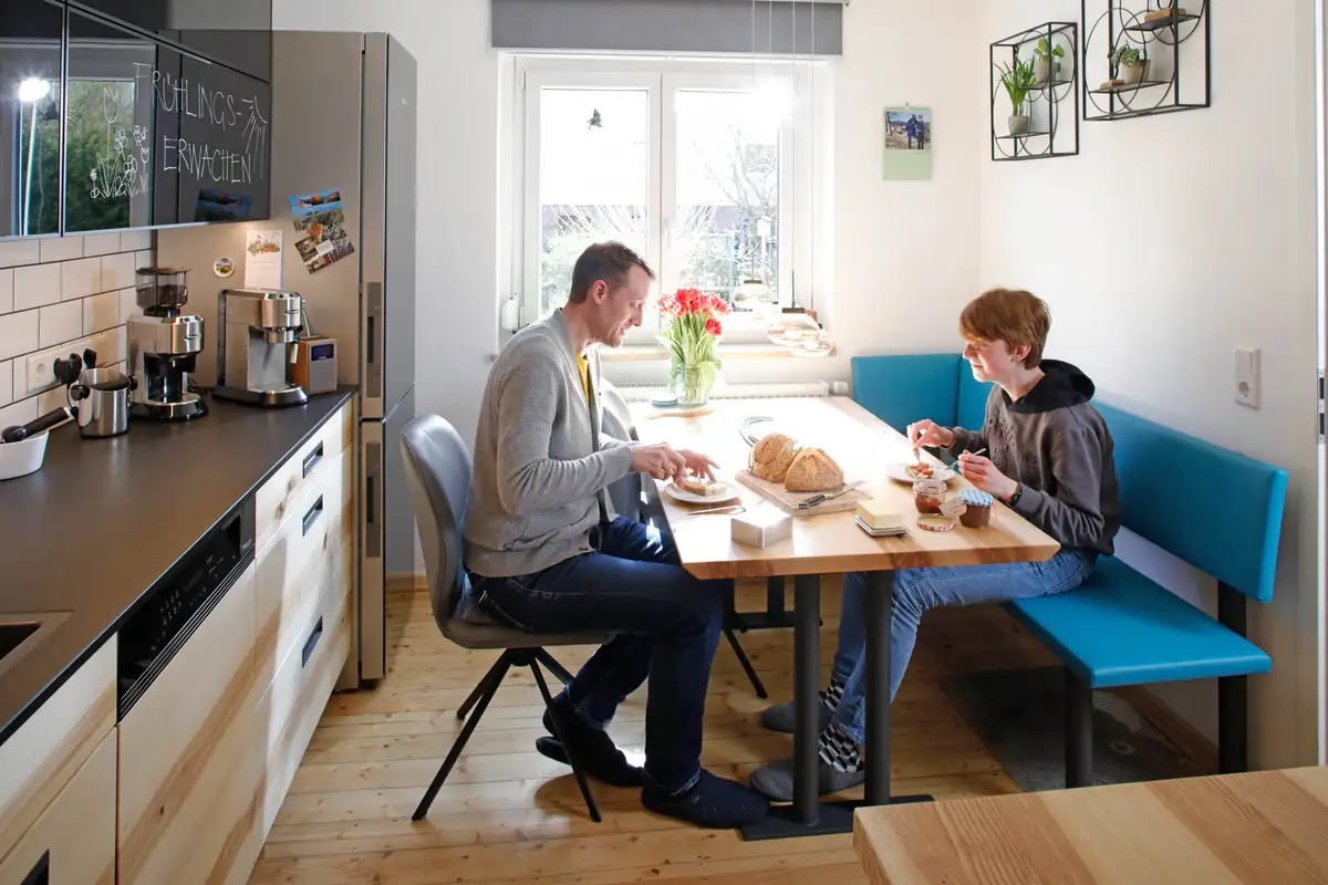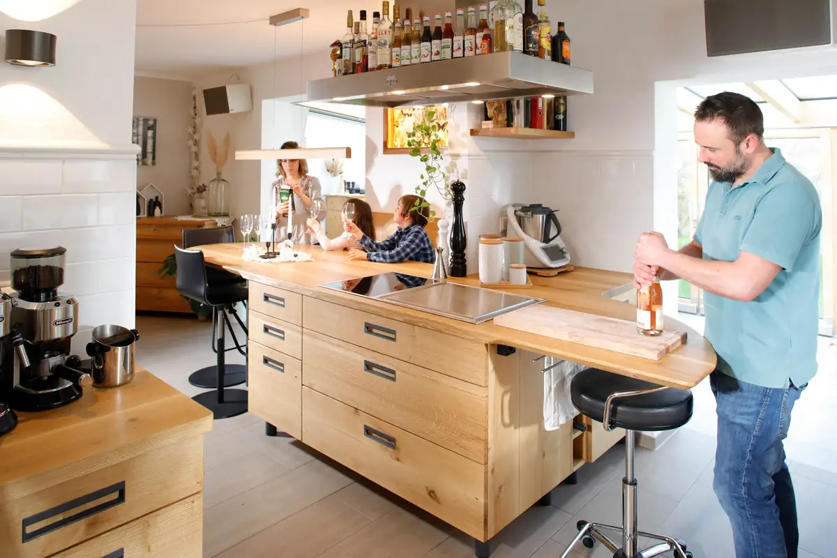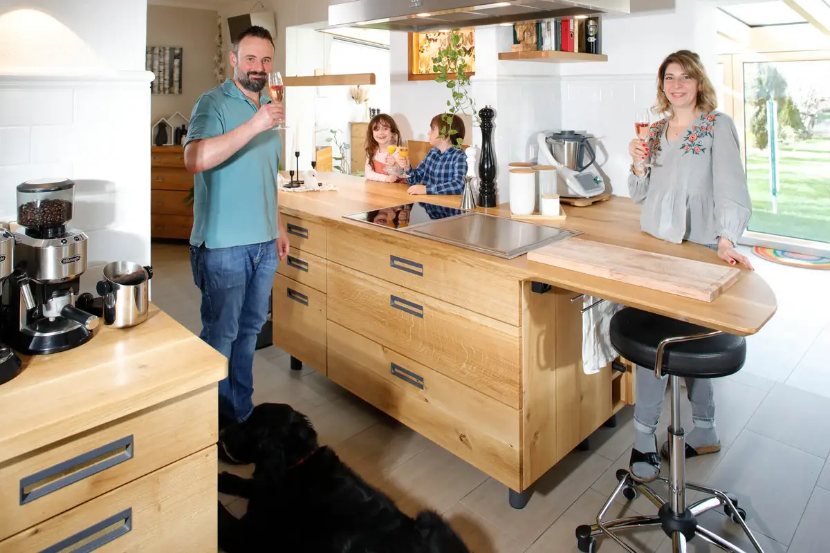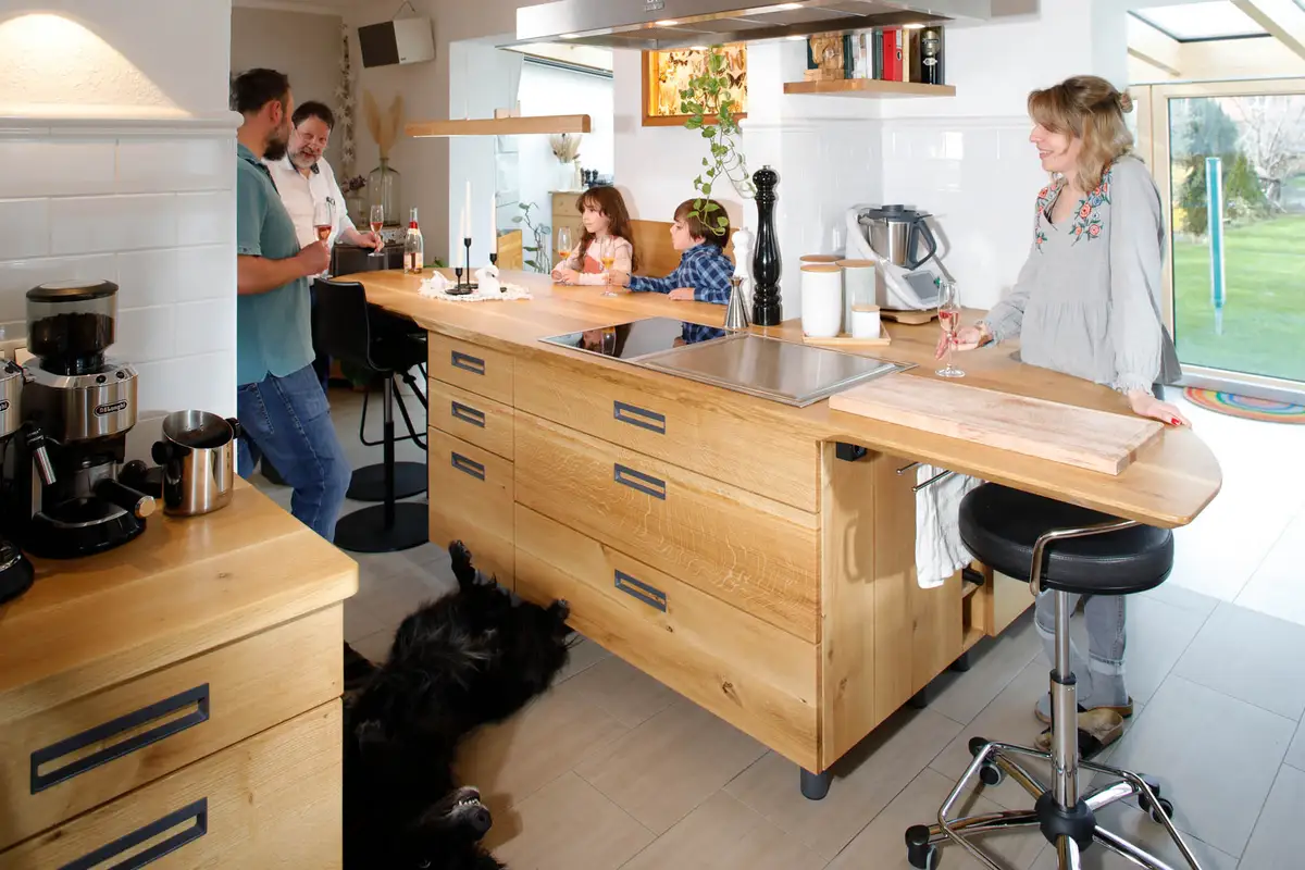 Schon am Tag des Einzuges in die neue Küche hat sich die Kochinsel zum absoluten Zentrum des ganzen Hauses und der Familie entwickelt. Ähnlich kompliziert war es bei Kunden aus Bielefeld, die zur Küchenplanung fast eine Woche im Sittenbachtal zu Gast waren. In ihrem Brief schrieben sie viele Monate später: