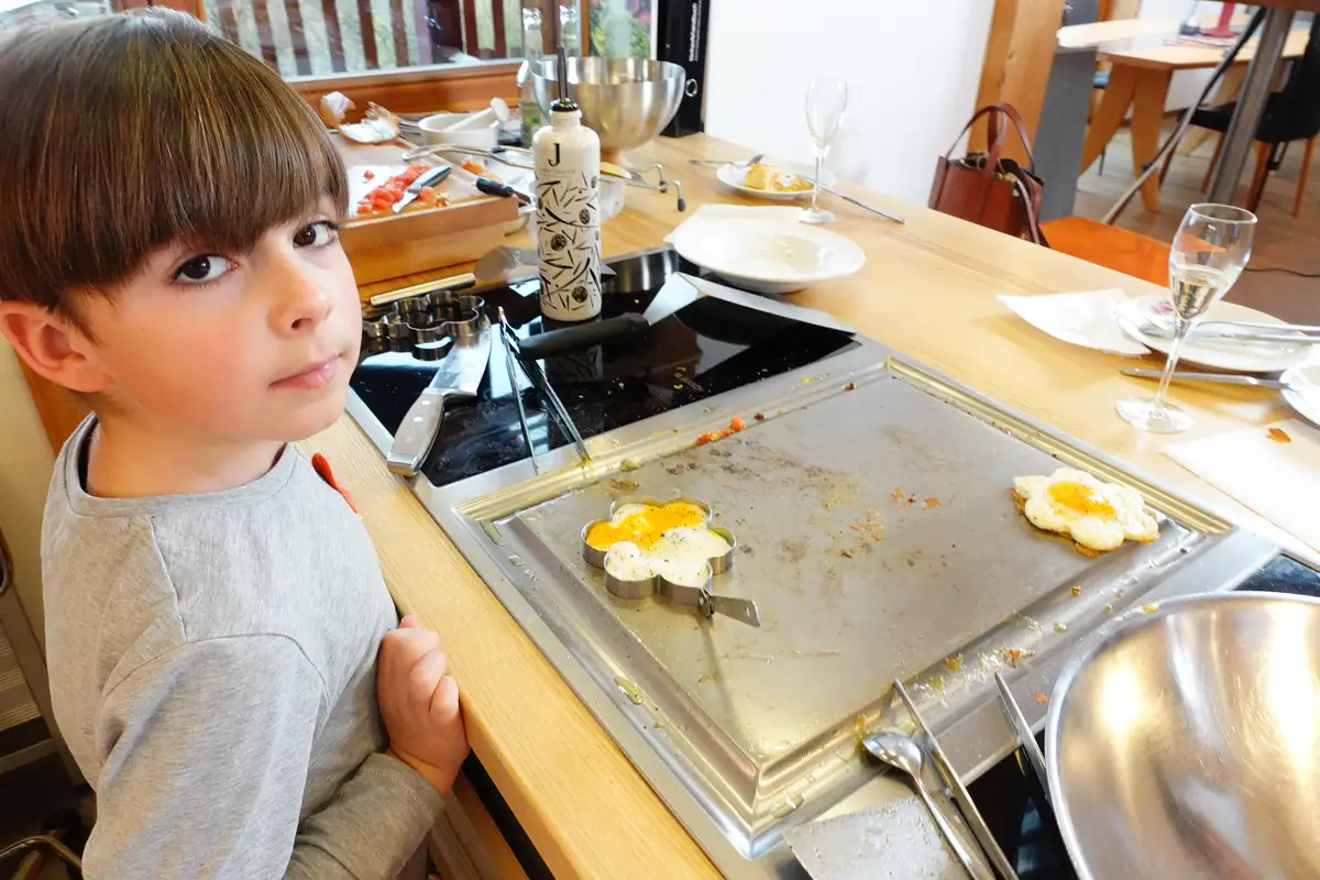 Felix trainiert an unserem Tepan Yaki schon mal für daheim