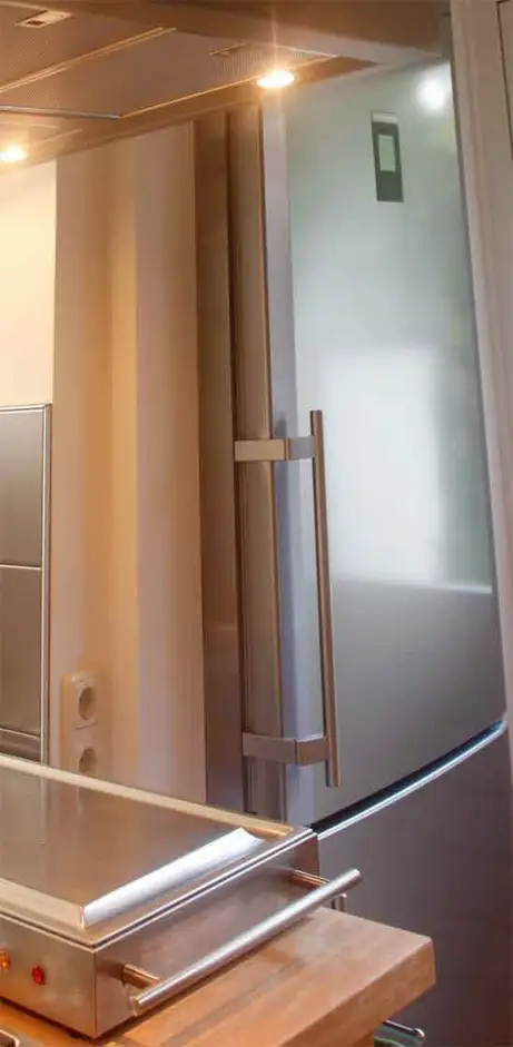 Der Kühlschrank von Miele und der Tepan Yaki von Jaksch, den man auch mal im Garten nutzen kann