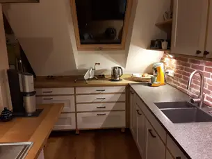 Diese Küche stand mal in unserer Ausstellung und wanderte ein paar Jahre später in die nur 900 Meter Luftlinie entfernte Nachbarschaft