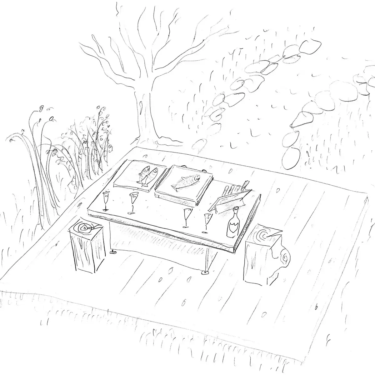 Während des Gesprächs entsteht erst mal eine kleine Zeichnung von der zukünftigen Gartenküche