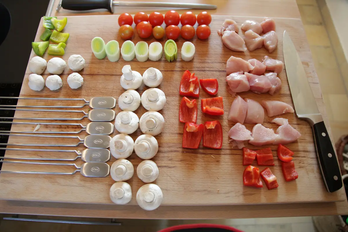 Unser Beispiel für die Outdoorküche mit Außenkühlschrank von Liebherr und dem mobilen Tepan Yaki, die Messer sind von Nesmuk