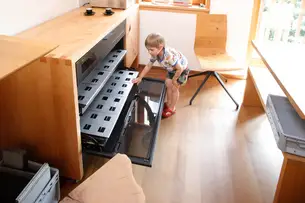 Würde man den Schrank aufschneiden, sähe man die beiden Schubladen und den großen Wassertank, aber besser lässt man ihn ganz