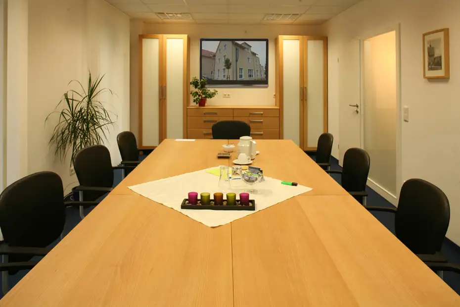 Im Konferenzraum kann durch den mehrteiligen Mitteltisch auch eine Unterrichtssitzordnung gestellt werden.