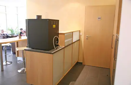 Familie Hense, also Mutter Christa und die beiden Junioren Holger und Heiko, haben mit uns lange an der Idee der Cafeteria gebastelt, bis ein perfektes Konzept entstand. Auf der einen Seite, in der küchenähnlichen Zeile, der komfortable Service mit einem hochmodernen Caffeautomaten, auf der anderen Seite ein Mittelzentrum, an der der Caffe getrunken, gelernt, oder einfach nur mehr oder weniger entspannt diskutiert werden kann. Zum Üben gibt es außerdem zwei CD-Arbeitsplätze mit den Spezialprogrammen für alle Führerscheinklassen und viele echte Relaxinseln auf den Sofas.