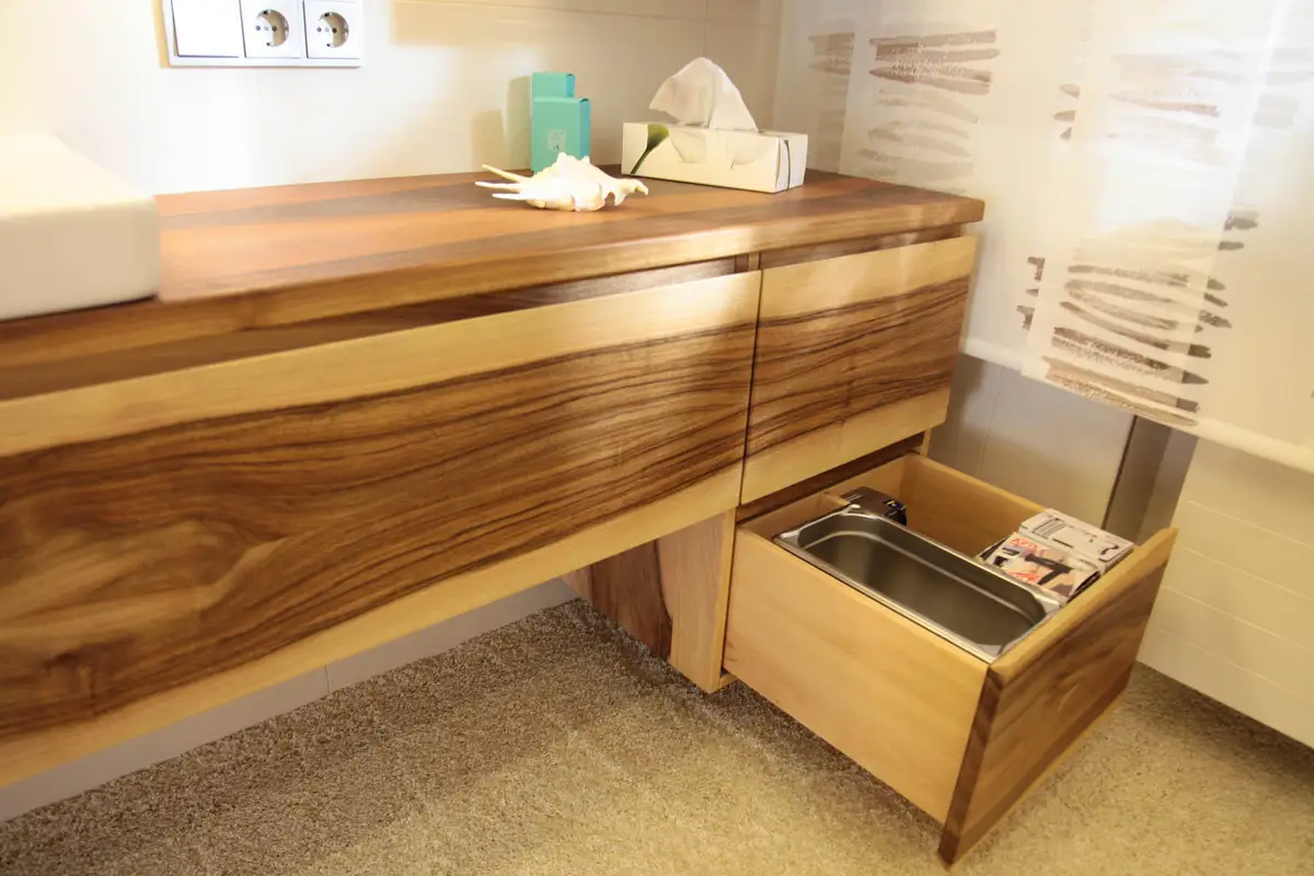 Ein praktisches Detail, ist die Schublade mit integriertem Abfallbehälter.