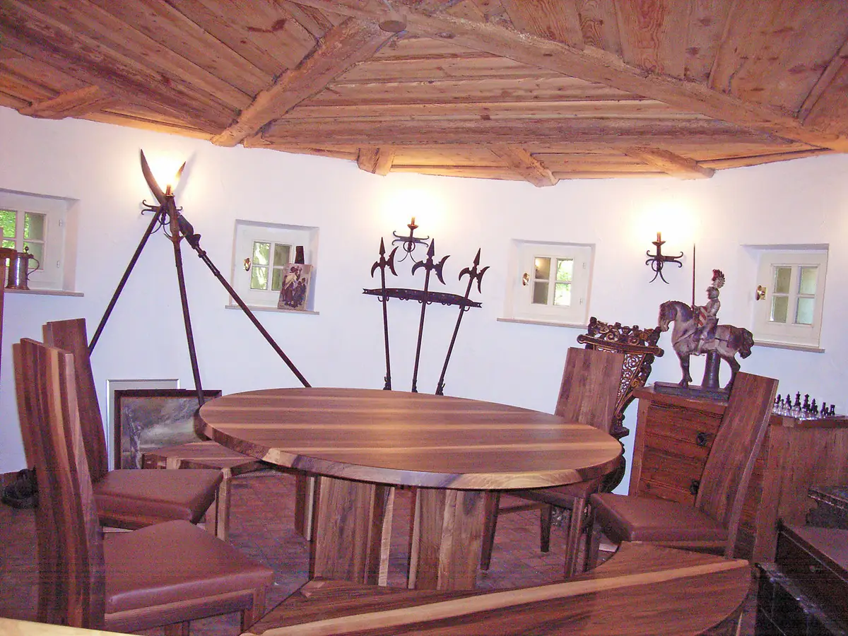 Pokertisch aus fränkischem Nussbaum im Burgturm