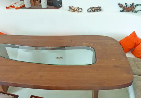 Eichen-Massivholztisch mit Glaseinlage