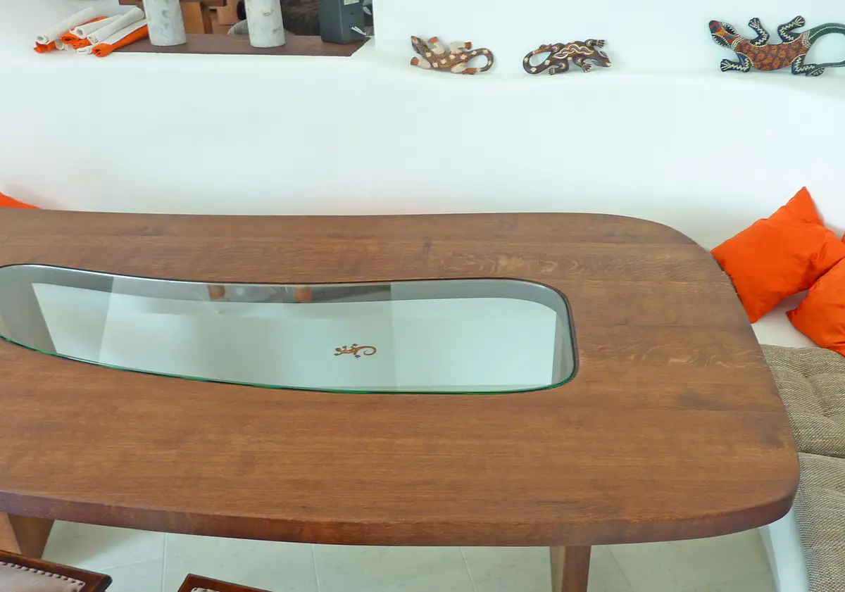 Jenseits des Rechtecks: Freie Tischform in Eiche Massivholz mit Glaseinlage