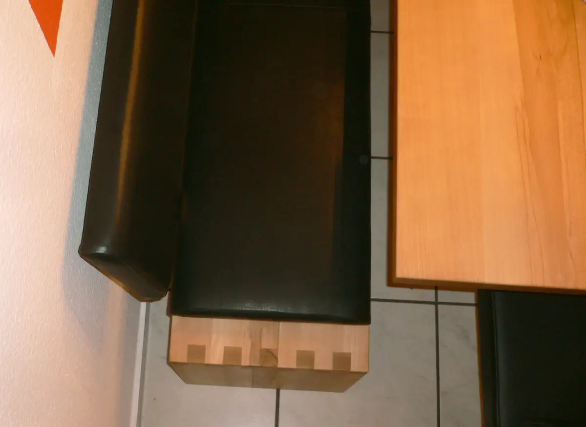 Die Eckverbindung der Bank mit Fingerzinken