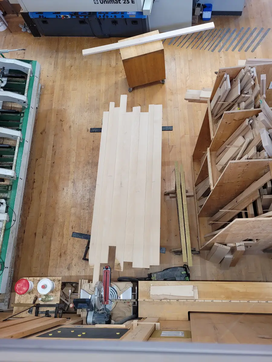 Die besäumten Bretter vor dem Hobeln im Vierseiter