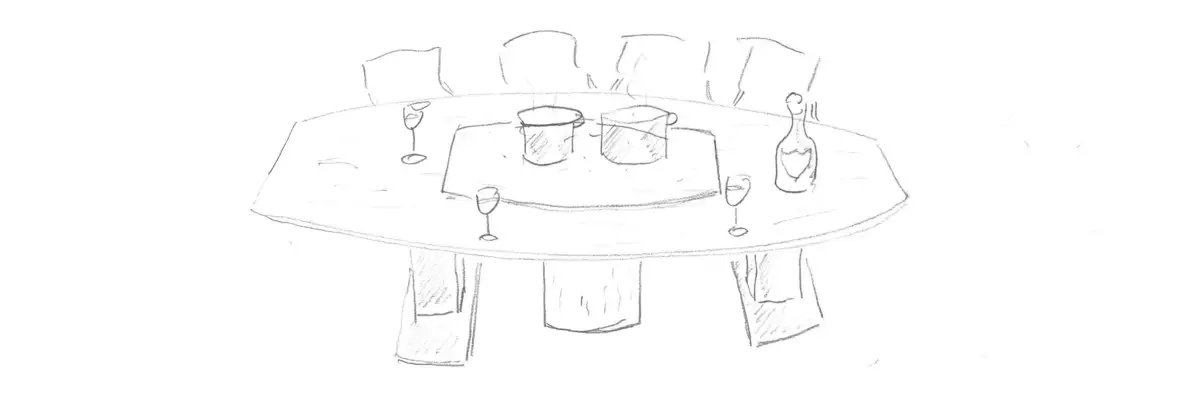 Das war die allererste Idee für den Tisch, die kurz nach dem Telefonat an den Kunden übermittelt wurde.
