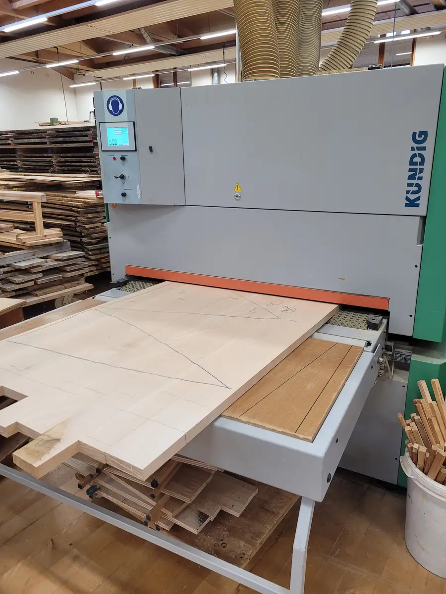 Fertigung des höhenverstellbaren Esstisches aus dem Massivholz Frankens für Leverkusen