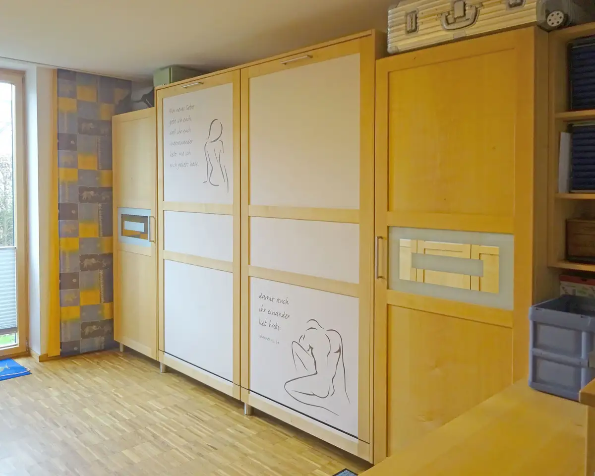 Hier sind dein paar Beispiele für Schrankbetten zum Aufklappen. Mit einem Klick auf das Foto kommen Sie zum entsprechenden Beitrag. Ein elektrisch aus- und einfahrbares Schrankbett finden Sie auf unserer Sonderseite.