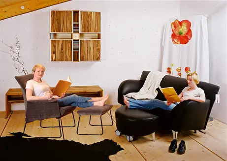 Denn an der gleichen Wand in unserer Ausstellung stand vor 18 Jahren schon ein Wohnzimmer, dass wir mit Ihr fotografiert haben und sie kam tags darauf mit passender Frisur, passender Jeans und T-Shirt und ich wusste nach den ersten Fotos wieder, warum das Fotografieren mit Ihr damals immer so perfekt war. Ganz lieben Dank dafür. Bei Ihrem 20-jährigen Möbelmacher-Jubiläum werden wir die Fotos wieder ausgraben, aber für den Moment hat sie unser Wohnzimmer und unsere Firma erneut perfekt in Szene gesetzt.