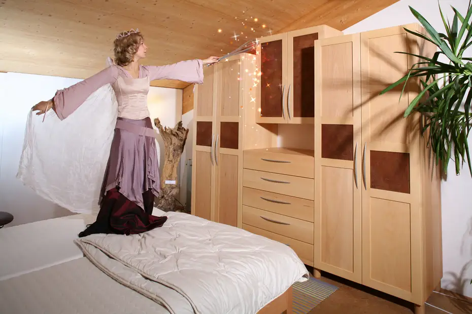 Rindentuch im Schlafzimmer mit Fee