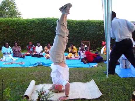 Sportlehrerin zeigt Muzungu-Kopfstand (so nennt man dort die Weisen)
