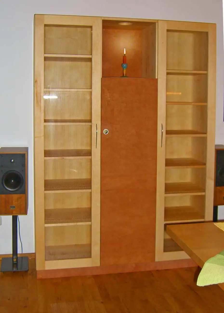 Tür, Rückwand und Sockel aus Rindentuch