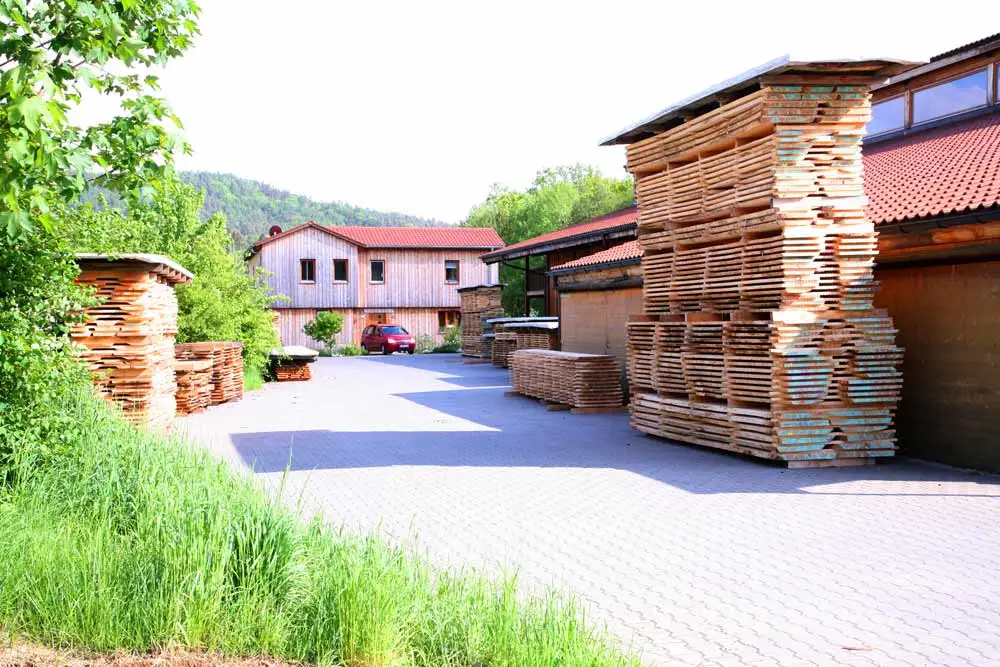 - Garantie über die Regionalität des verschreinerten Holzes: mindestens 95%, statistisch meist sogar 100%, der verwendeten Hölzer kommen aus der Region. Dabei liegen die Vorteile auf der Hand: Wir sind näher an unserem Lieferanten und wir wissen um die Qualität unser heimischen Hölzer, daneben sind die Anfahrtswege kürzer und sparen somit Kraftstoff und Zeit. Darüber hinaus können wir so zur aktiven Waldpflege beitragen und schaffen bzw. sichern noch zusätzlich Arbeitsplätze in der Frankenalb